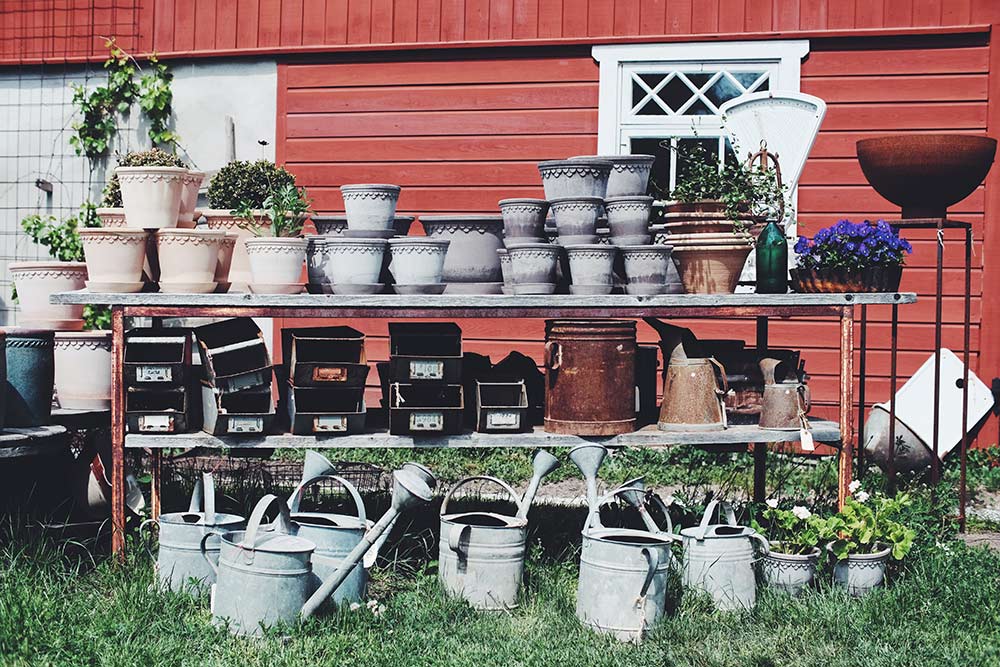 Här finns antikt, vintage, kuriosa inredning i en härlig blandning för både ute och inne klart att ställa på plats.
