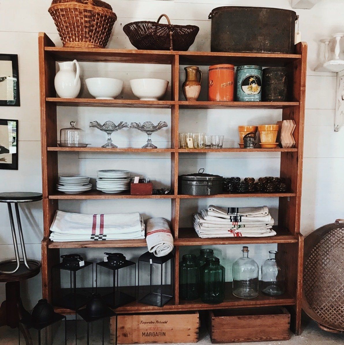“Gamla industrilampor, pinnstolar och bord. Precis så där som jag vill att en antikbutik ska se ut.”