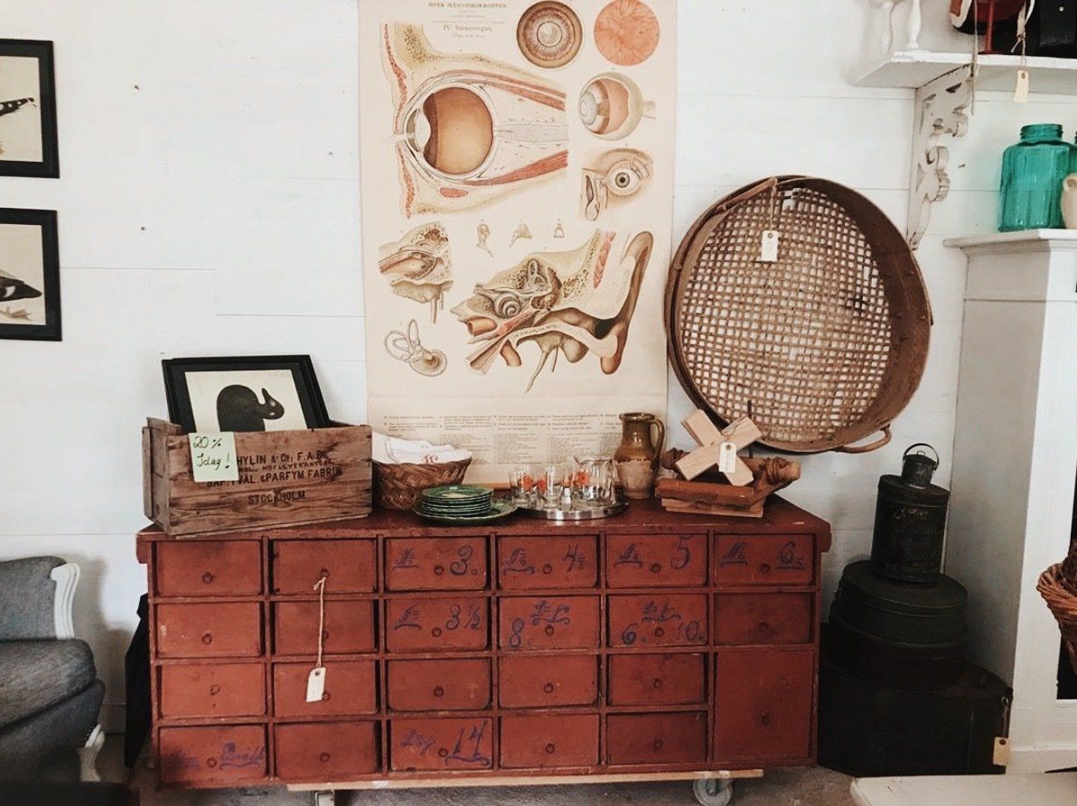 Här hittar ni noga utvalda vintagefynd, pampiga skrivbord till klassiska medicinflaskor.
